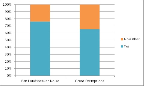 - 76.1% of respondents voted to ban loudspeaker noise, but